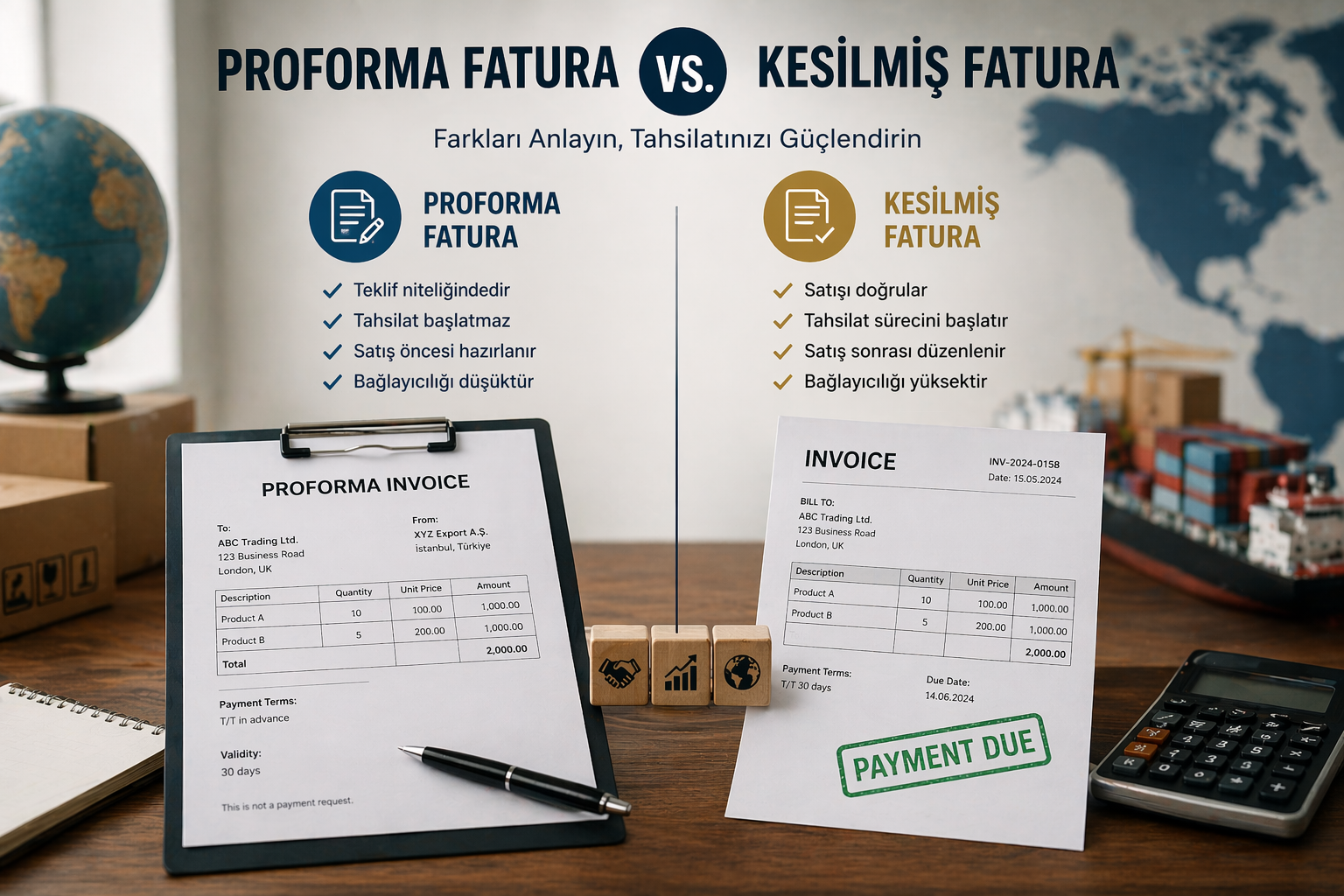 Uluslararası ticarette süreç çoğu zaman bir teklif ile başlar, sipariş ile devam eder ve fatura ile tamamlanır. Ancak bu sürecin en çok karıştırılan noktalarından biri, proforma fatura ile kesilmiş (nihai) fatura arasındaki farktır. Bu iki belge çoğu zaman benzer görünse de, tahsilat süreci üzerindeki etkileri tamamen farklıdır.